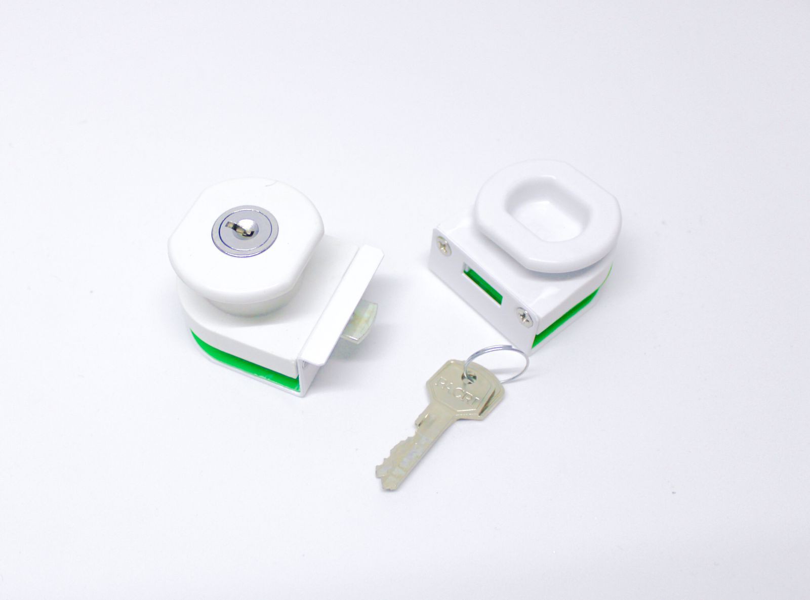 Fechadura possui a parte traseira em metal com pintura eletrostática de alta resistência, a parte frontal onde encontra-se os puxadores e o miolo de metal é polímero de alta qualidade, utilizada para fechamento e envidraçamento de sacada. A fechadura colante vidro/vidro é utilizada para manter os vidros fechados, possui fita adesiva Saint Gobain a melhor do mercado!